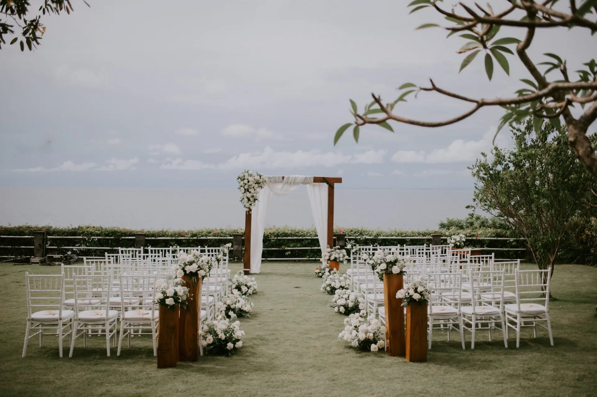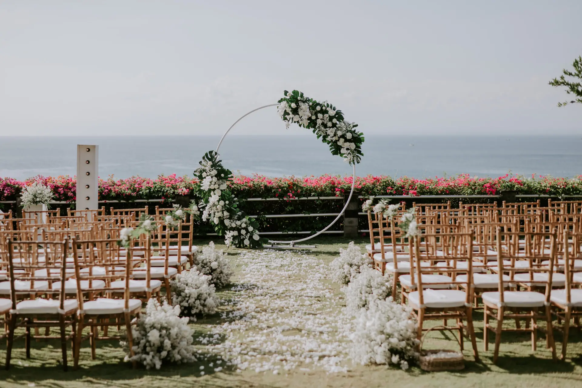 - Elegantly styled flowers and decorations in the ceremony area